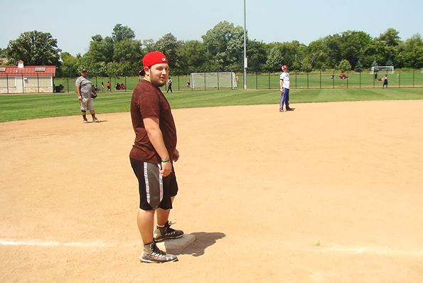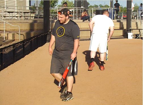 First Base Hit:   Sunday  July 16th, 2017  vs.  Blue Balls Club,  Gm 1  at  Wheeling,  3’